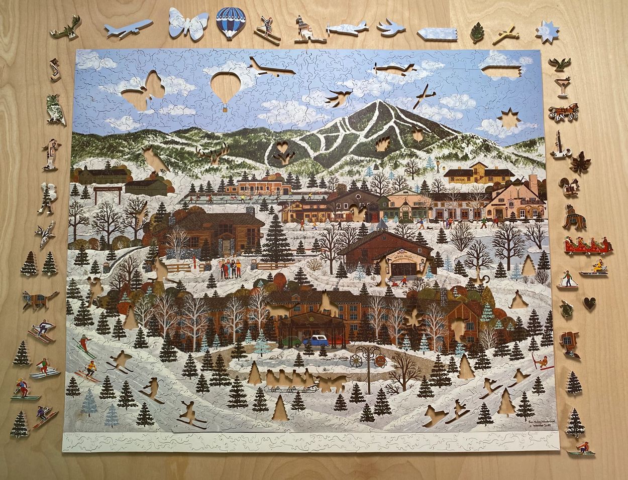 Hand-cut Wooden Jigsaw Puzzle: $1950.00 with approximately 1,050 pieces, handcrafted with a mild challenge for the whole family to enjoy.